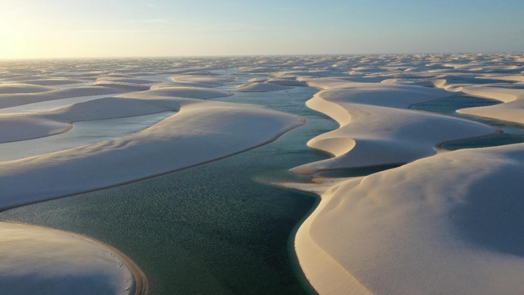 O passeio inicia com a travessia em balsa pelo Rio Preguiças. Em seguida, continuamos em veículo 4x4 por trilhas off-road, atravessando áreas de dunas dentro do Parque Nacional dos Lençóis Maranhenses, com paradas estratégicas para fotos.